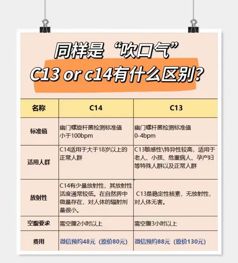 目前的檢查方式主要為碳13與碳14尿素呼氣實(shí)驗(yàn)法。