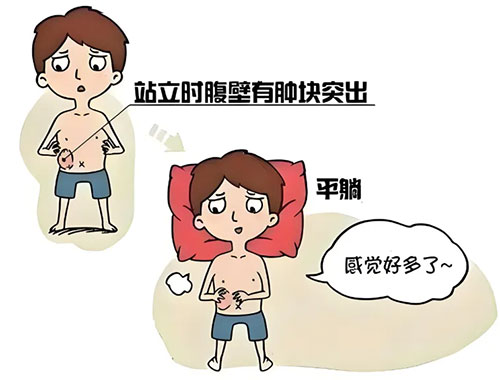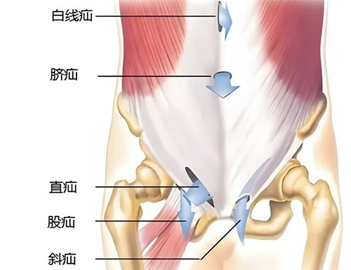 斜疝:通常是由于先天性的腹壁薄弱導(dǎo)致的,內(nèi)臟通過腹股溝管向外突出。